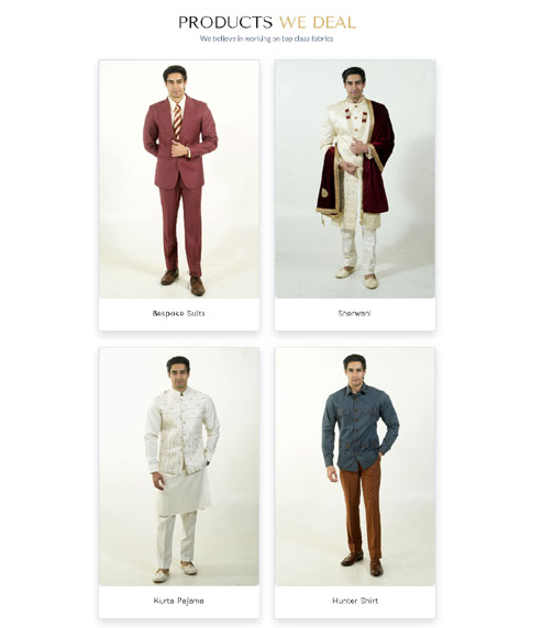 We specialize in Menswear such as sherwani, suit, kurta pajama etc.